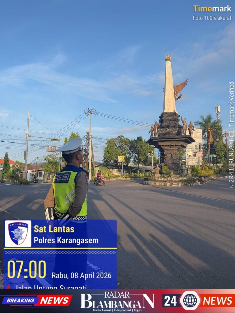 RADAR BLAMBANGAN.COM, | Polda Bali – Polres Karangasem – Satuan Lalu Lintas – Pada hari rabu, 8 April 2026 pukul 06.30 Wita untuk tetap menjaga dan menciptakan kelancaran arus lalu lintas di seputaran Ktl 2 simpang tiga Kodim personil satuan Lalu Lintas Polres Karangasem melaksanakan pemantauan, pengaturan dan penjagaan dipos Ktl 2 simpang tiga Kodim. Kehadiran Polisi Lalu Lintas Polres Karangasem di jalan sangat penting utamanya untuk melaksanakan penjagaan dan pengaturan lalu lintas guna tetap menjaga kelancaran arus lalu lintas serta meniadakan kemacetan diseputaran pos Ktl 2 simpang tiga Kodim yang cukup rawan arus lalu lintasnya.