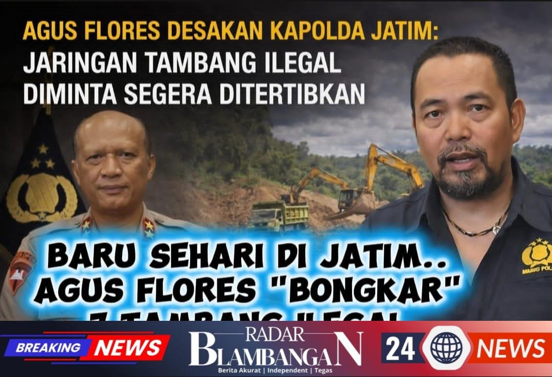 RADAR BLAMBANGAN.COM, | Surabaya – Ketua Umum Wartawan Fast Respon, Agus Flores, kembali menunjukkan langkah agresifnya dalam membongkar dugaan praktik tambang ilegal. Kali ini, sebanyak tujuh titik tambang di wilayah Jawa Timur menjadi sasaran pengungkapan, sebagai bentuk dukungan terhadap program Presiden Prabowo Subianto dan Kapolri Listyo Sigit Prabowo.