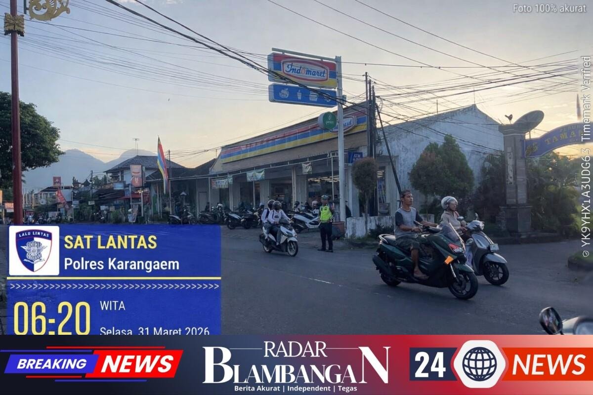 RADAR BLAMBANGAN.COM, | Polda Bali – Polres Karangasem – Satuan Lalu Lintas – Pada hari Selasa, 31 Maret 2026 sekira pukul 06.30 Wita demi menjaga keamanan dan kelancaran arus lalu lintas di BTN Taman Asri, personil satuan Lalu Lintas Polres Karangasem yang sudah disprinkan bertugas gatur pagi, tetap dengan semangat dan ikhlas serta berbekal rasa tanggungjawab tinggi melaksanakan tugas pemantauan, pengaturan dan penjagaan arus lalu lintas serta dapat membantu menyeberangkan masyarakat pengguna jalan yang melintas di seputaran terutama pada jam – jam padat arus lalu lintas di pagi hari pada jalan masuk sp. 3 BTN Taman Asri Amlapura.