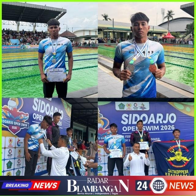 RADAR BLAMBANGAN.COM, | Sidoarjo (09/02/26) — Personel Armada III kembali mengharumkan nama satuan dengan meraih prestasi pada ajang Sidoarjo Open Swim Khusus Pelajar & TNI/Polri Tahun 2026 yang digelar di Kolam Renang GOR Sidoarjo. Kejuaraan ini menjadi ajang unjuk kemampuan atlet renang dari berbagai satuan TNI/Polri dan pelajar, (08/02).