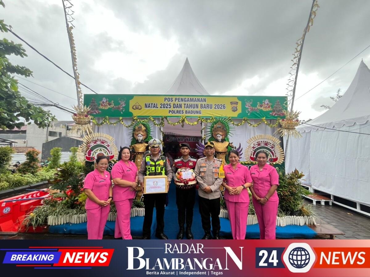RADAR BLAMBANGAN.COM, | BADUNG, -– Sebagai wujud perhatian dan kepedulian pimpinan terhadap anggota, Wakapolres Badung Kompol I Gede Suarmawa, S.H. bersama Wakil Ketua Bhayangkari Cabang Badung Ny. Dewi Suarmawa, para Pejabat Utama Polres Badung, serta pengurus Bhayangkari melaksanakan kunjungan dan pembagian bingkisan kepada petugas Pos Pengamanan di daerah Tibubeneng dan Pos Pelayanan yang berlokasi di Terminal Mengwi Type A, Sabtu (27/12/2025). Kegiatan ini dilaksanakan dalam rangka Operasi Lilin Agung 2025.