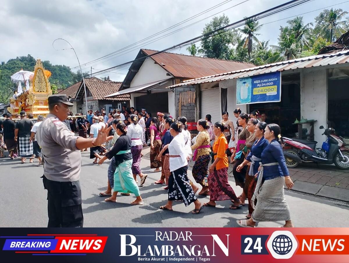 Kegiatan pengamanan dilakukan secara bersinergi dengan Pecalang Desa Adat, guna memastikan prosesi adat berjalan dengan aman, tertib, dan lancar tanpa mengganggu aktivitas masyarakat sekitar.