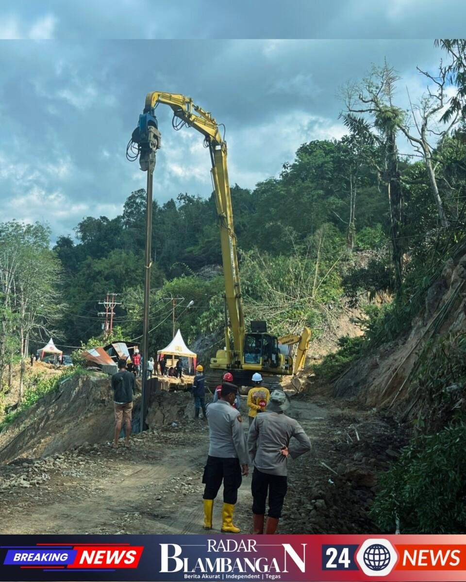 Hingga siang hari, kegiatan pengaturan lalu lintas masih terus berjalan seiring pemasangan pancang besi yang telah mencapai tujuh tiang. Pemasangan tersebut bertujuan untuk memperkokoh badan jalan agar lebih stabil dan aman digunakan kembali oleh masyarakat.