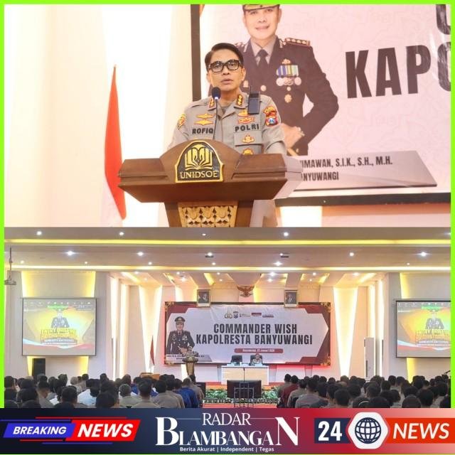 RADAR BLAMBANGAN.COM, | Banyuwangi – Kapolresta Banyuwangi Kombes Pol. Dr. Rofiq Ripto Himawan, S.I.K., S.H., M.H., memimpin langsung kegiatan Commander Wish yang digelar di Aula Universitas Doktor Soekardjo Banyuwangi, Kamis (22/1/2026).