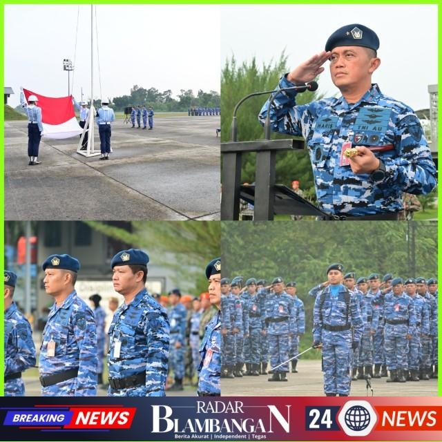 RADARBLAMBANGAN.COM | Pekanbaru — Penerangan Lanud RSN. Seluruh personel Pangkalan TNI Angkatan Udara Roesmin Nurjadin beserta satuan Insub melaksanakan Upacara Bendera rutin tanggal 17 Januari 2026 yang berlangsung khidmat di Apron Baseops Lanud Roesmin Nurjadin, Senin (19/1/2026). Upacara tersebut dipimpin langsung oleh Komandan Lanud Roesmin Nurjadin Marsma TNI Abdul Haris, M.M.Pol., M.M.O.A.S.