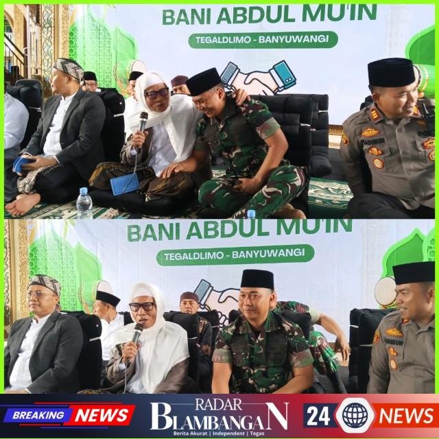 Kegiatan yang dihadiri sekitar 350 orang ini menghadirkan Komandan Kodim 0825/Banyuwangi Letkol (Arm) Triyadi Indrawijaya, S.H., M.I.P., bersama pimpinan ponpes KH Suyuti Toha, unsur Forkopimka Tegaldlimo, serta tokoh agama seperti Gus Haris dan Kanjeng Moh. Kurnia Hasanudin.