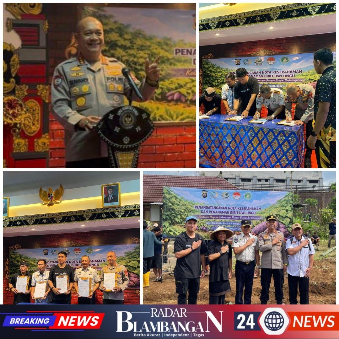 RADAR BLAMBANGAN.COM , | BANGLI – BALI, – Dirbinmas Polda Bali, Kombes Pol. Suwandi Prihantoro, S.I.K., memimpin kegiatan Ketahanan Pangan Uwi Ungu di Lapas Narkotika Klas II A Kabupaten Bangli, Jumat (23/1/2026). Kegiatan ini dihadiri oleh Kasetum Polda Bali, Kapolres Bangli, Kalapas Narkotika Bangli, Rektor Universitas Dwijendra, Ketua TPS3R Sekar Tunjung, Ketua Kelompok Tani PCTA Bali, dan para pemangku kepentingan lainnya. Penandatanganan Nota Kesepahaman (MoU) Uwi Ungu dan penanaman Uwi Ungu di lahan Lapas Narkotika Bangli menjadi simbol komitmen bersama dalam meningkatkan ketahanan pangan dan melestarikan kearifan lokal.