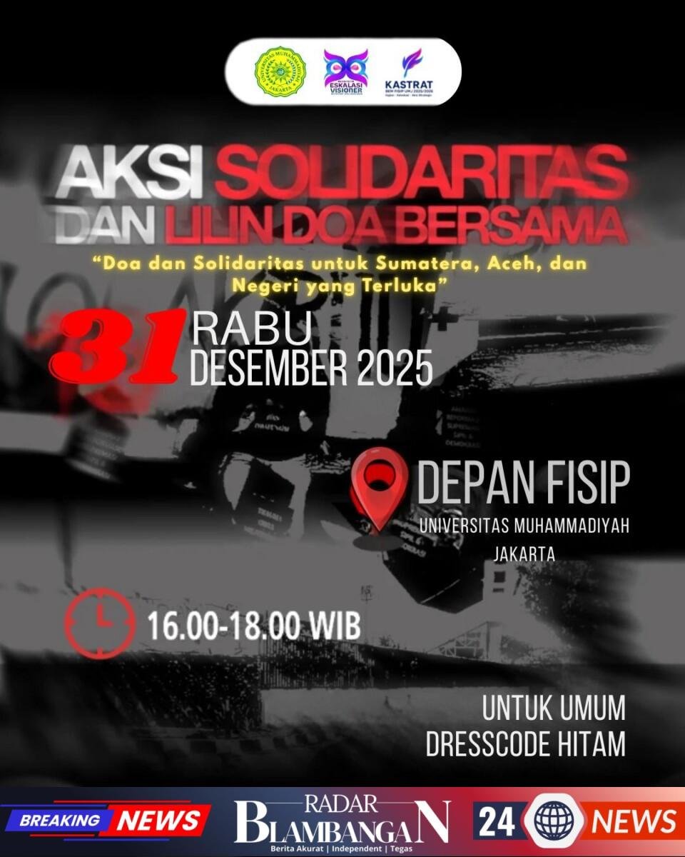 RADAR BLAMBANGAN.COM, | Badan Eksekutif Mahasiswa Fakultas Ilmu Sosial dan Ilmu Politik Universitas Muhammadiyah Jakarta (BEM FISIP UMJ) telah melaksanakan kegiatan Doa Bersama dan Bakar Lilin pada 31 Desember 2025 sebagai bentuk solidaritas, empati, dan kepedulian terhadap saudara-saudara kita yang terdampak bencana banjir di Pulau Sumatra dan Aceh.