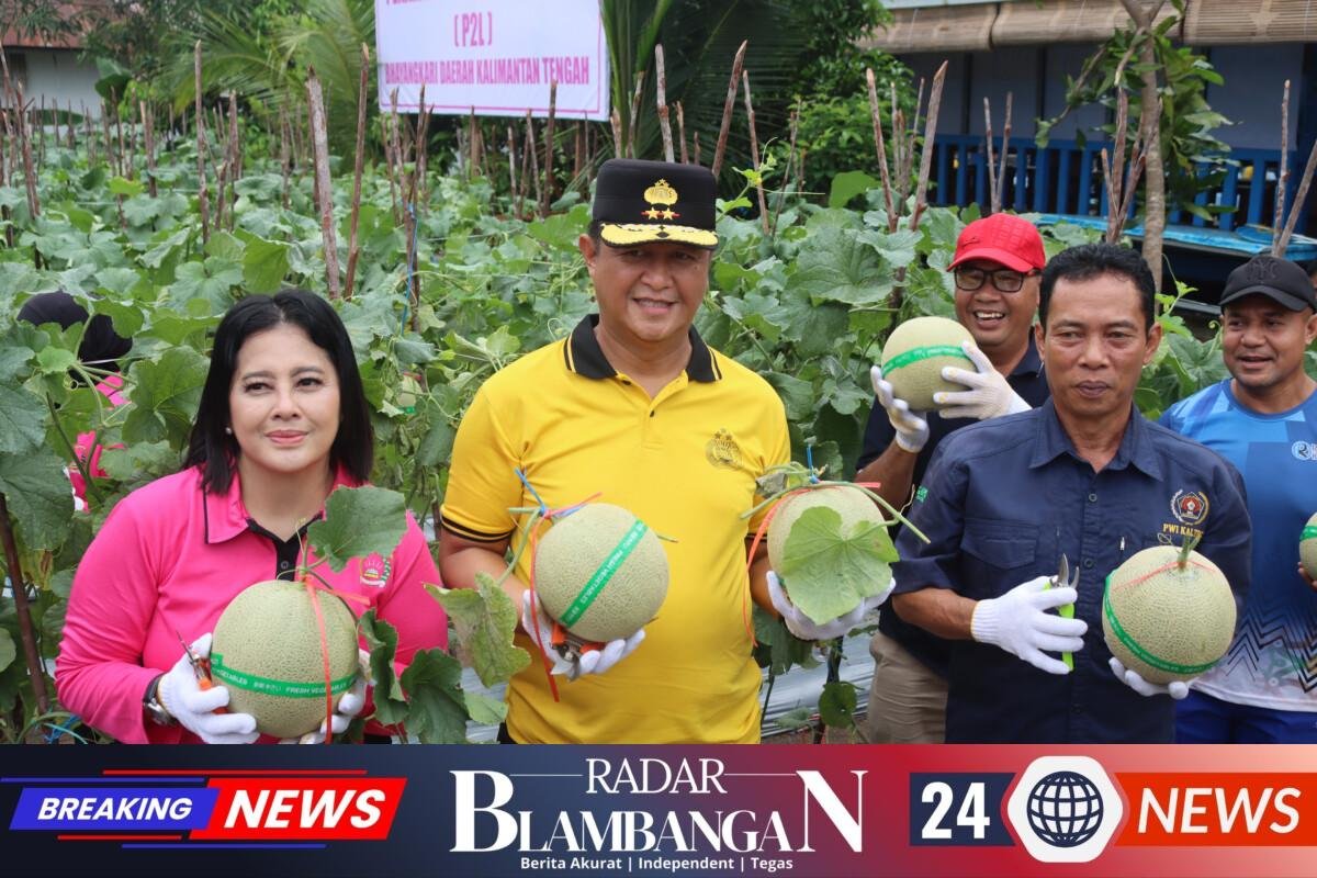 RADAR BLAMBANGAN.COM, | Palangka Raya – Kapolda Kalimantan Tengah (Kalteng) Irjen Pol Iwan Kurniawan, S.I.K., M.Si. bersama Ketua Bhayangkari Kalteng Ny. Maya Iwan Kurniawan, melaksanakan panen buah melon di lahan Pekarangan Pangan Lestari (P2L), Mapolda setempat, Jumat (6/2/2026).