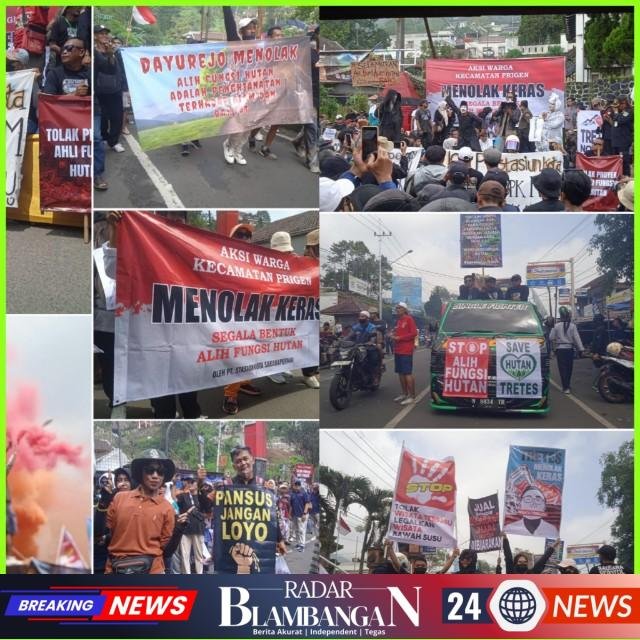 RADAR BLAMBANGAN.COM, | Pasuruan – Suara perlawanan menggema dari kaki pegunungan Tretes. Ribuan warga Kecamatan Prigen turun ke jalan, menyuarakan penolakan keras terhadap rencana alih fungsi kawasan hutan menjadi proyek real estate dan wisata terpadu. Aksi yang berlangsung pada Minggu (29/3/2026) ini menjadi simbol kegelisahan sekaligus tekad masyarakat dalam menjaga benteng terakhir sumber kehidupan mereka.