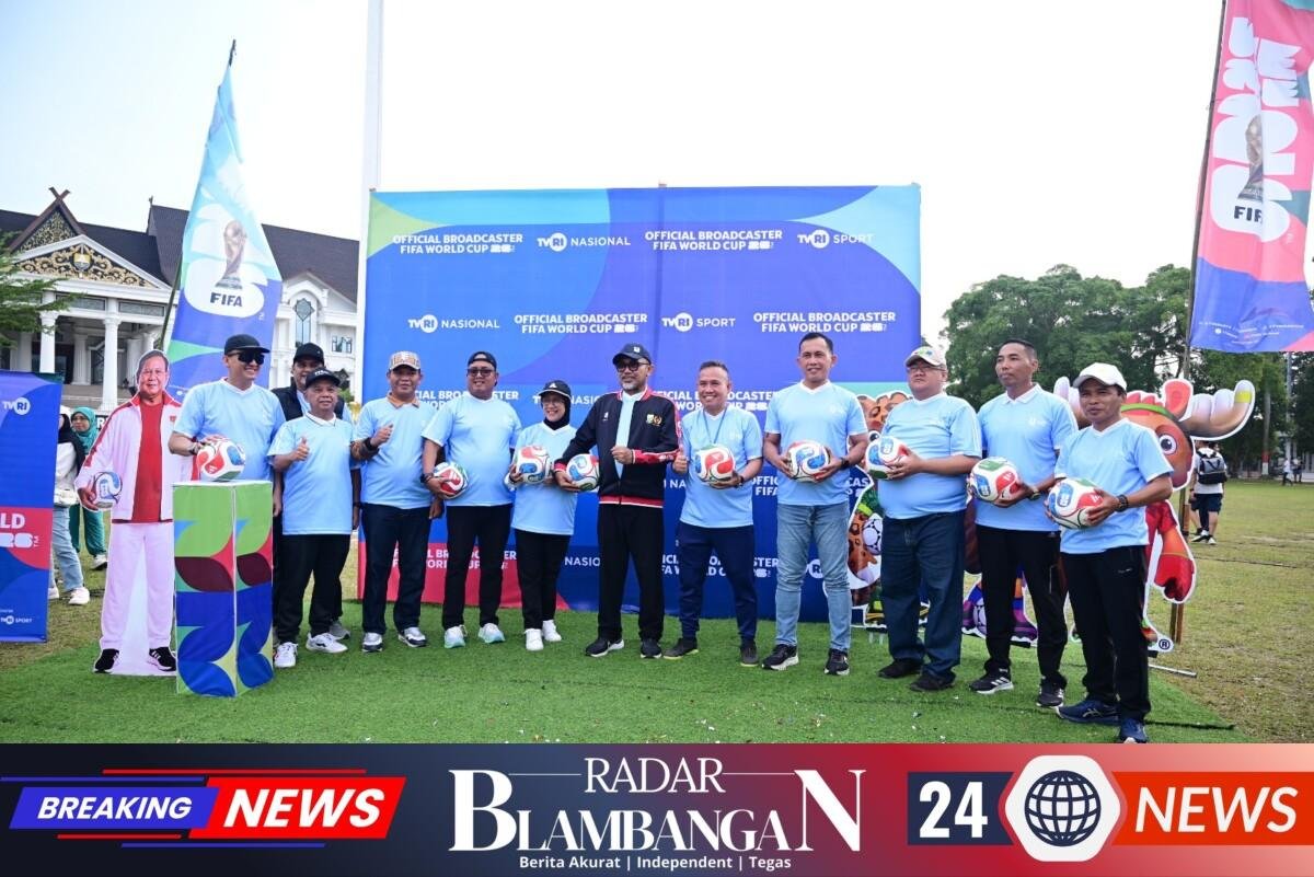 Rangkaian acara diawali dengan senam bersama, dilanjutkan sambutan dari Kepala Stasiun TVRI Jambi dan Sekda Provinsi Jambi. Suasana semakin semarak saat para peserta menyaksikan tayangan langsung detik-detik Kick Off World Cup 2026 dari TVRI Nasional, yang dilaksanakan serentak di 34 daerah di seluruh Indonesia.