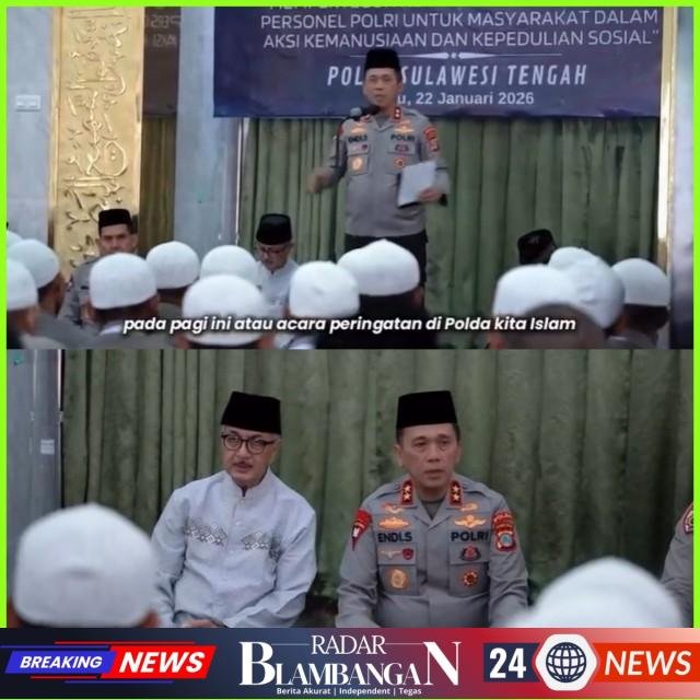 RADAR BLAMBANGAN.COM, | Palu – Peringatan Isra Mi’raj Nabi Muhammad SAW 1447 Hijriah/2026 Masehi di lingkungan Polda Sulawesi Tengah menjadi momentum refleksi spiritual bagi seluruh personel Polri untuk memperkuat keimanan, ketakwaan, serta nilai-nilai kemanusiaan dalam pelaksanaan tugas sehari-hari.