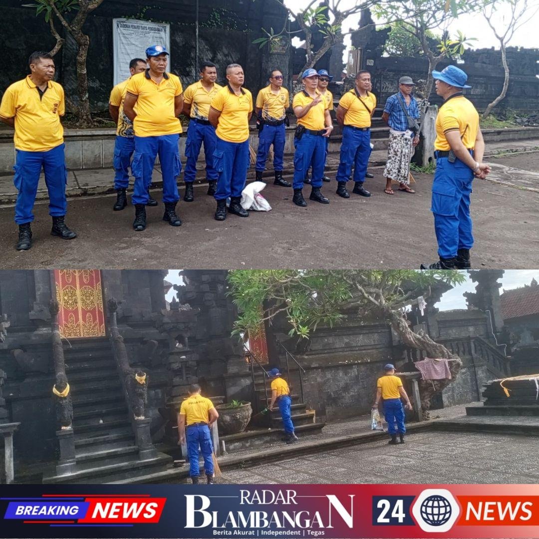 Kegiatan ini dipimpin oleh Kasat Polairud Polres Klungkung AKP I Komang Gede Manik Jaya, S.H., dan diikuti oleh seluruh personel Satpolairud sebagai bentuk gotong royong dalam menjaga kebersihan tempat suci.