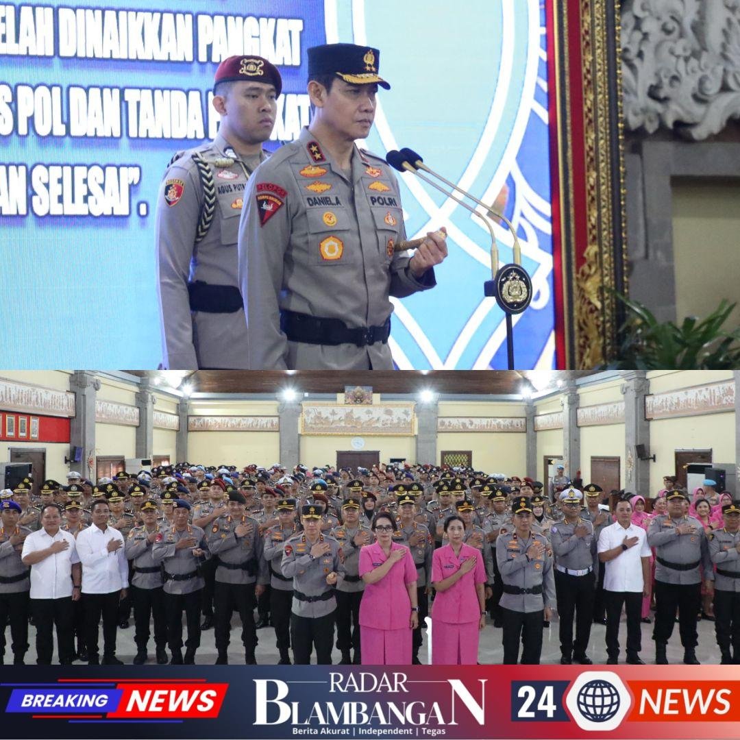 RADAR BLAMBANGAN.COM, | BALI, –Kapolda Bali Irjen Pol. Daniel Adityajaya, S.H., S.I.K., M.Si., memimpin langsung upacara kenaikan pangkat personel Polri dan PNS Polri yang dilaksanakan di Gedung Presisi Polda Bali, Senin (5/1/2026).
