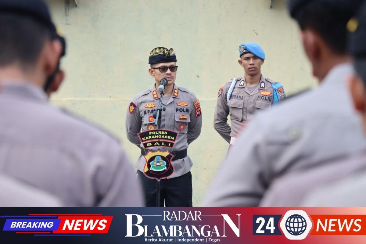 RADAR BLAMBANGAN.COM, | KARANGASEM , — Kapolres Karangasem AKBP Joseph Edward Purba, S.H., S.I.K., M.H., memimpin Apel Kesiapan Pengamanan Paruman Nayaka oleh salah satu Kelompok di Desa Adat Bugbug, bertempat di Lapangan Tantya Sudirajati Polres Karangasem, Minggu sore (19/10).