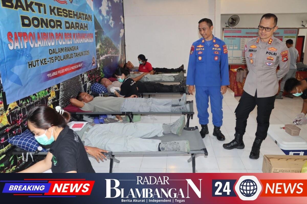 RADAR BLAMBANGAN.COM, | KARANGASEM, – Kapolres Karangasem AKBP Joseph Edward Purba, S.H., S.I.K., M.H. memimpin kegiatan Bakti Kesehatan Donor Darah Satuan Polisi Perairan (Satpolair) dalam rangka memperingati Hari Ulang Tahun (HUT) ke-75 Polisi Perairan dan Udara (Polairud) Tahun 2025. Kegiatan yang mengusung tema “Polairud Presisi Untuk Indonesia Maju” ini diselenggarakan pada Rabu (12/11) bertempat di Aula Kanya Badra Paramarta Polres Karangasem.