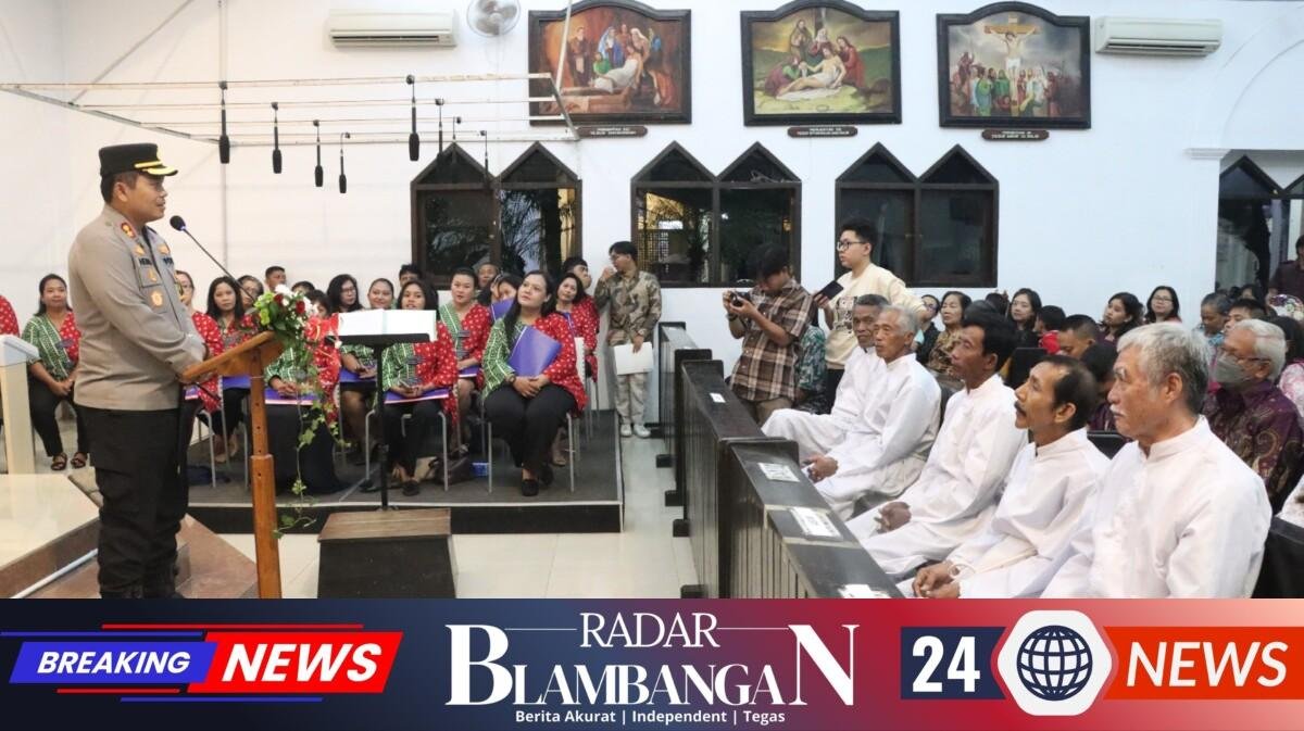 RADAR BLAMBANGAN.COM, | Nganjuk – Di sela rangkaian pengamanan Operasi Lilin Semeru 2025, Kapolres Nganjuk AKBP Henri Noveri Santoso, S.H., S.I.K., M.M didampingi Wakapolres dan pejabat utama Polres Nganjuk menyambangi sejumlah gereja untuk menyampaikan ucapan selamat Natal kepada umat Kristiani, Rabu malam (24/12/2025).