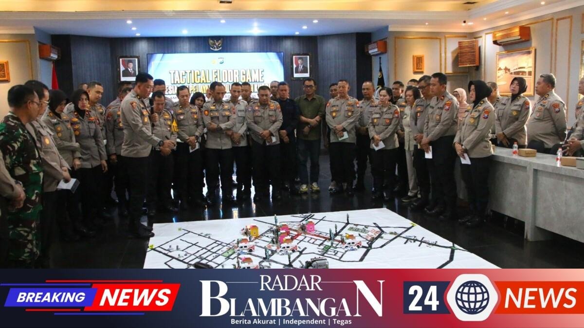 Pada H-1 kegiatan Mujahadah Kubro 1 Abad NU, Kapolresta Malang Kota, Kombes Pol Putu Kholis Aryana didampingi Kabag Ops Kompol Wiwin Rusli memimpin Tactical Floor Game (TFG) di Ballroom Sanika Satyawada, Jumat (06/02/2026).