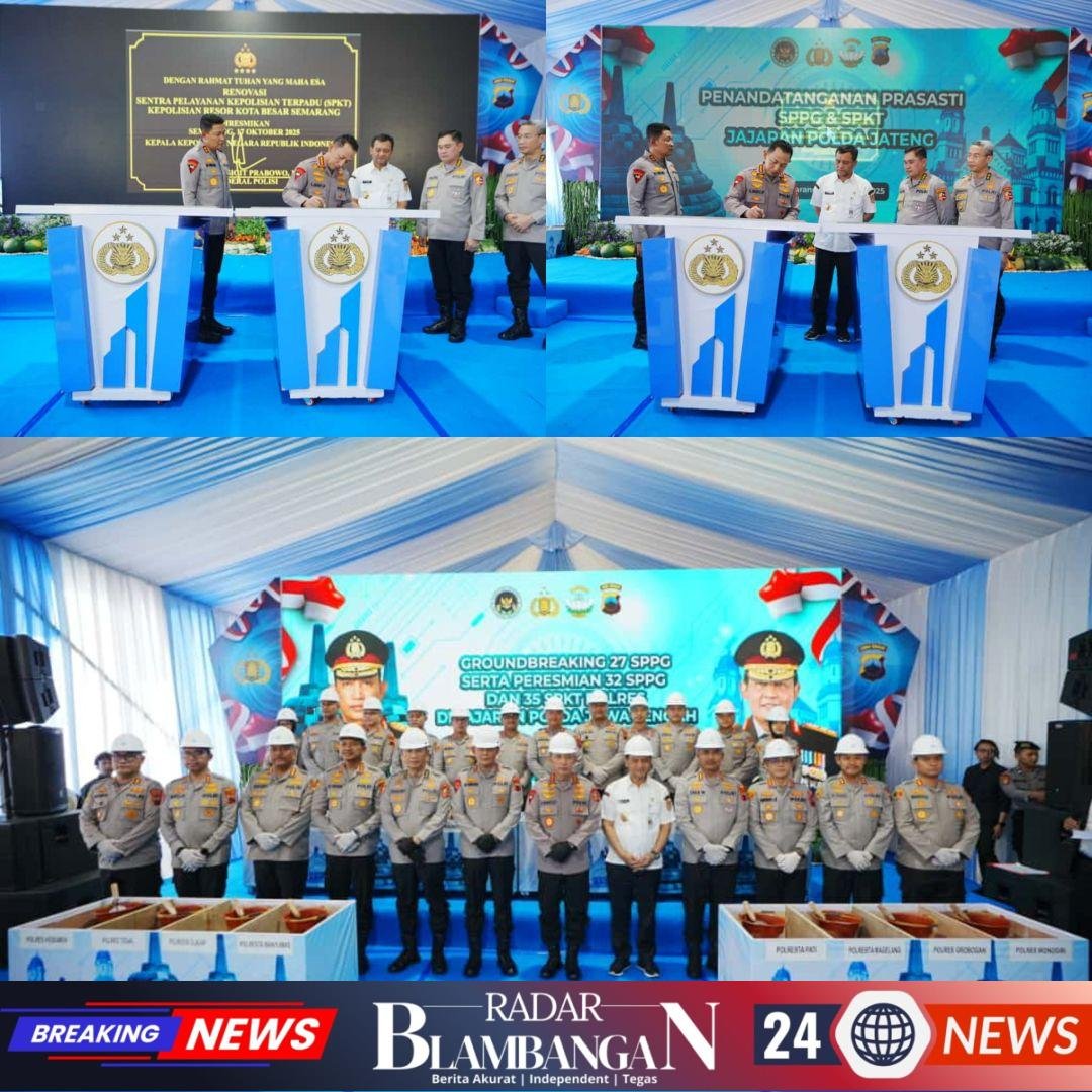 RADAR BLAMBANGAN.COM, | SEMARANG, – Kepala Kepolisian Negara Republik Indonesia (Kapolri) Jenderal Polisi Listyo Sigit Prabowo meresmikan 35 Sentra Pelayanan Kepolisian Terpadu (SPKT) Polres di jajaran Polda Jawa Tengah.