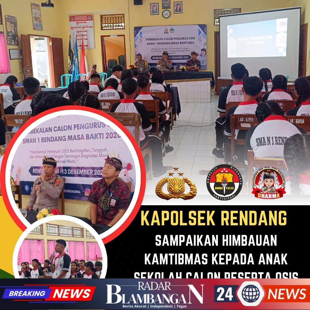 RADAR BLAMBANGAN.COM, | KARANGASEM, – – Kegiatan Kapolsek Rendang Kompol I Made Berata,SH,MH bersama Bhabinkamtibmas Rendang Goes To School di SMAN 1 Rendang bertujuan untuk memberikan pembekalan kepada para Calon OSIS untuk menumbuhkan kedisiplinan, tanggung jawab dan etika di sekolah bagi para siswa yang bertemakan Membentuk Pemimpin OSIS Berintegritas, Tangguh dan Berkarakter di Tengah Degradasi Moral Generasi Muda, kamis 11/12/2025