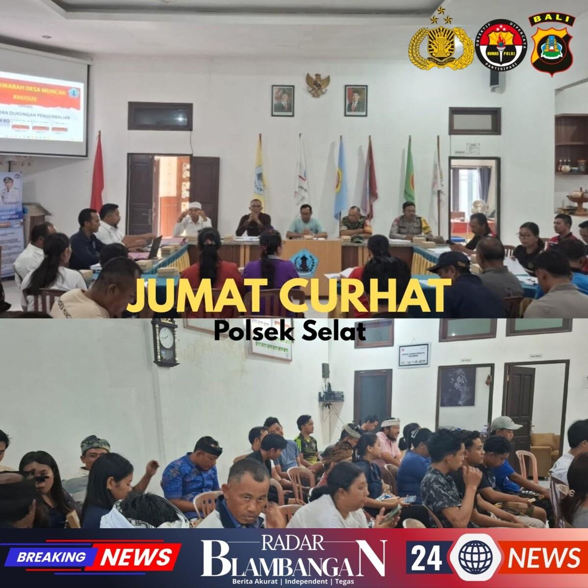 RADAR BLAMBANGAN.COM, | KARANGASEM, – Pada hari Jumat tanggal 05 Desember 2025 sekitar Pukul 08:30 Wita Kapolsek Selat *AKP IDA BAGUS ASTAWA, S.H.* yang didampingi Babinkamtibmas Desa Muncan *AIPDA I NENGAH MERTAYASA.* serta Personil Polsek Selat melaksanakan giat sambang sekaligus serap keluhan Warga / Tokoh Masyarakat termasuk di Desa Muncan Kecamatan Selat, yang disinkronkan dengan kegiatan Kepolisian dengan tema “Jumat Curhat”.