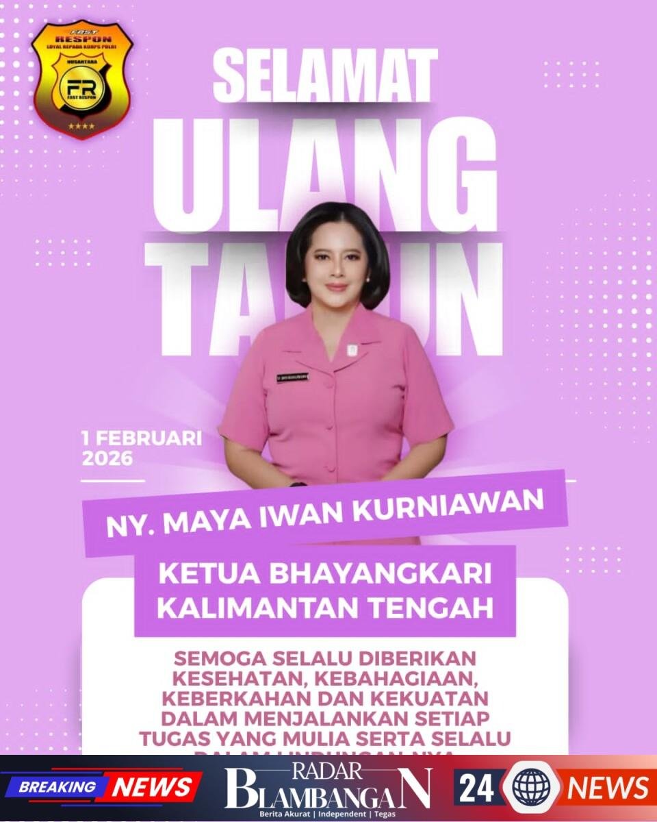 RADAR BLAMBANGAN.COM, | Jakarta, – Ketua Umum Perkumpulan Wartawan Fast Respon (PW-FRN), Agus Flores, beserta seluruh jajaran pengurus menyampaikan ucapan selamat ulang tahun kepada Ketua Bhayangkari Daerah Kalimantan Tengah, Ny. Maya Iwan Kurniawan, yang merayakan hari kelahirannya pada hari ini, Minggu, 1 Februari 2026.