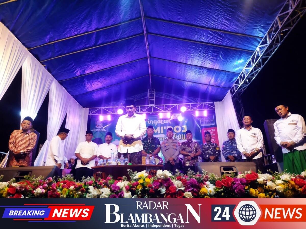 RADAR BLAMBANGAN.COM, | Pesanggaran – Koramil 0825-11/Pesanggaran Serka Sumardi dan Sertu Nurhidayanto (Babinsa Desa Kandangan) menghadiri pengajian akbar dalam rangka memperingat Isro’ Mi’raj Nabi Muhammad, SAW 1447 H dan santunan anak yatim serta santuna kaum dhuafa di halaman bertempat di Mushola Al – Amin Dusun Krajan Desa Kandangan Kecamatan Pesanggaran Kabupaten Banyuwangi di hadiri ± 1000 jemaah. (23/01/2026).