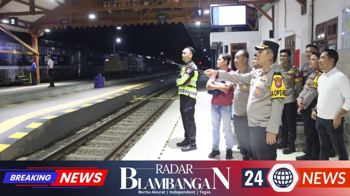RADAR BLAMBANGAN.COM, | Nganjuk – Kapolres Nganjuk AKBP Henri Noveri Santoso, S.H., S.I.K., M.M bersama Wakapolres dan pejabat utama Polres Nganjuk melakukan pemantauan arus mudik dan pergerakan penumpang di sejumlah titik strategis, salah satunya Stasiun Kereta Api Nganjuk, Rabu malam (24/12/2025).