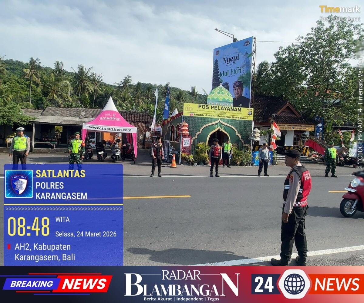 Pada hari Selasa, 24 Maret 2026 anggota sekira pukul 10.00 Wita nampak personil Satuan Lalu Lintas Polres Karangasem dengan penuh semangat dengan turun langsung melaksanakan penjagaan, pengaturan serta pemeriksaan ketat surat – surat kelengkapan barang bawaan pribadi dan kelangkapan ranmor terhadap salah satu ranmor pribadi lintas pulau yang melewati perbatasan yeh malet