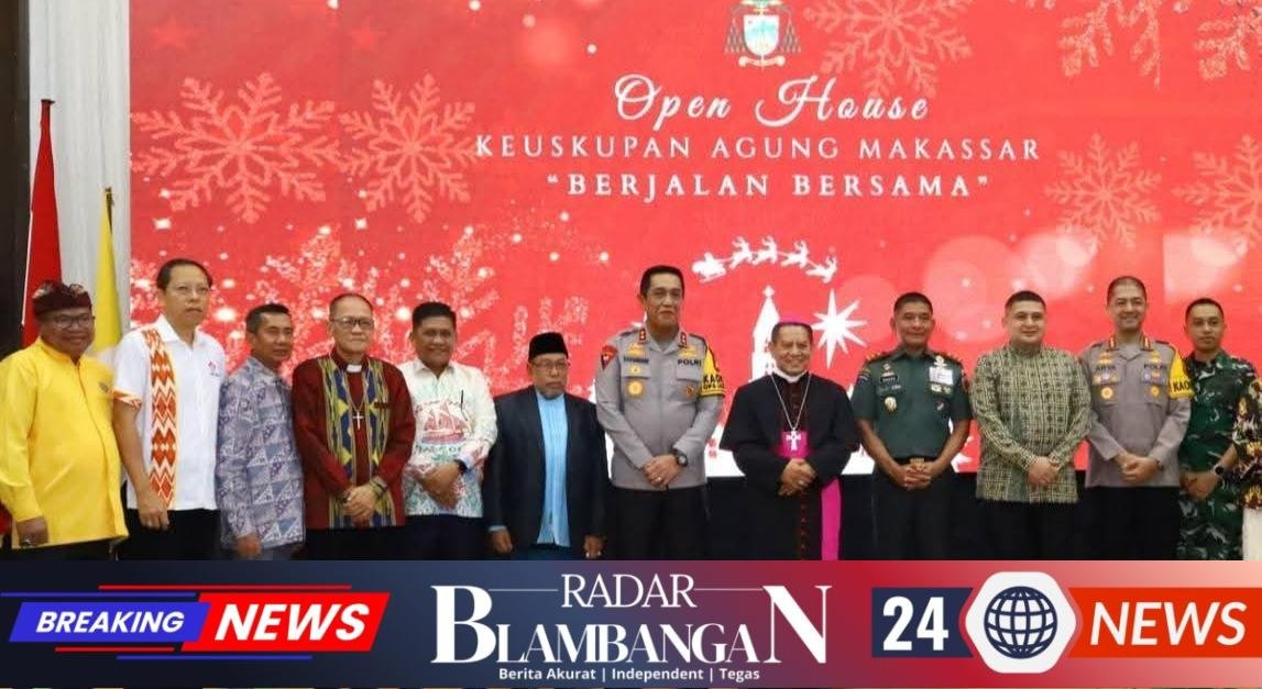 RADAR BLAMBANGAN.COM, | Makassar, – Kapolda Sulawesi Selatan Irjen Pol. Djuhandhani Rahardjo Puro, S.H., M.H., menghadiri kegiatan Open House Keuskupan Agung Makassar yang digelar di Aula GR. Schienders, CICM Keuskupan Agung Makassar, Jalan Thamrin No. 5 Makassar, Jumat (26/12/2025).