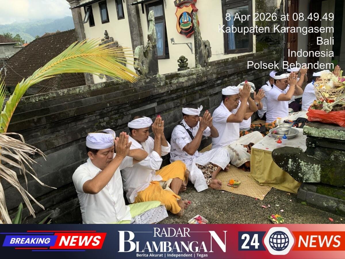 RADAR BLAMBANGAN.COM, | Dalam rangka memperingati Hari Raya Pagerwesi yang jatuh pada Rabu (8/4/2026), jajaran Kepolisian Sektor (Polsek) Bebandem melaksanakan kegiatan persembahyangan bersama. Bertempat di Pura Padmasana Polsek Bebandem, kegiatan yang dimulai pukul 08.00 WITA ini diikuti oleh seluruh personel dengan suasana khidmat.