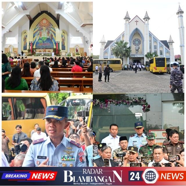 RADARBLAMBANGAN.COM | Pekanbaru – Penerangan Lanud Rsn. Komandan Lanud Roesmin Nurjadin Marsma TNI Abdul Haris, M.M.Pol., M.M.O.A.S., mengikuti kegiatan peninjauan lapangan dalam rangka persiapan Perayaan Natal di berbagai tempat ibadah serta peninjauan Posko Pengamanan Natal dan Tahun Baru 2026 di wilayah Kota Pekanbaru, Rabu (24/12/2025). Kegiatan peninjauan tersebut dipimpin langsung oleh Plt. Gubernur Riau, S.F. Hariyanto, M.T., dengan titik awal di Balai Pauh Janggi Gedung Daerah, Jalan Diponegoro, Pekanbaru.