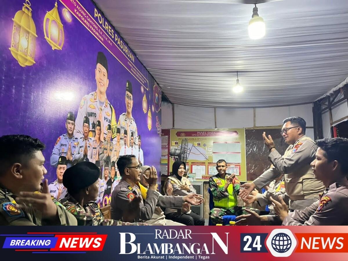 RADAR BLAMBANGAN.COM, | PASURUAN – Personel yang bertugas dalam Operasi Ketupat Semeru 2026 di wilayah Polres Pasuruan mendapat ‘suntikan semangat’ melalui kegiatan dukungan psikologis yang digelar di Pos Pengamanan (Pos Pam) Arteri Gempol, Sabtu (21/3/2026) malam.