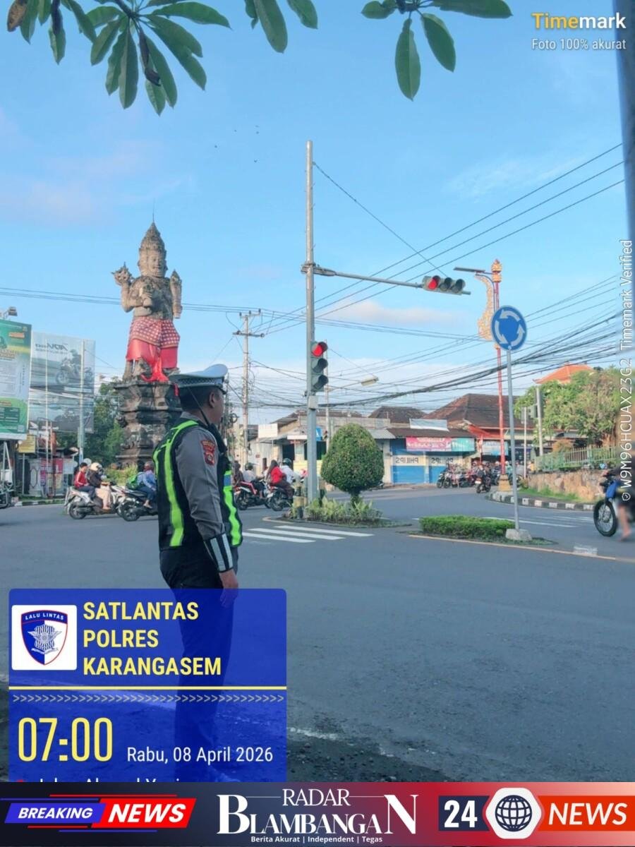 RADAR BLAMBANGAN.COM, | Polda Bali – Polres Karangasem – Satuan Lalu Lintas – Pada hari Rabu, 8 April 2026 sekira pukul 06.30 Wita untuk senatiasa menjaga ketertiban dan kelancaran arus lalu lintas terutama diseputaran di Ktl 1 Subagan personil bersama rekan lainnya melaksanakan tugas pemantauan, pengaturan dan penjagaan di kawasan tertib lalu lintas simpang empat Subagan Amlapura guna dapat memberikan rasa aman dan nyaman serta mencegah timbulnya kemacetan maupun kejadian laka lantas di seputaran Ktl 1 Subagan sehingga aktivitas masyarakat pengguna jalan umum tetap berlangsung dengan normal lancar dipagi hari.