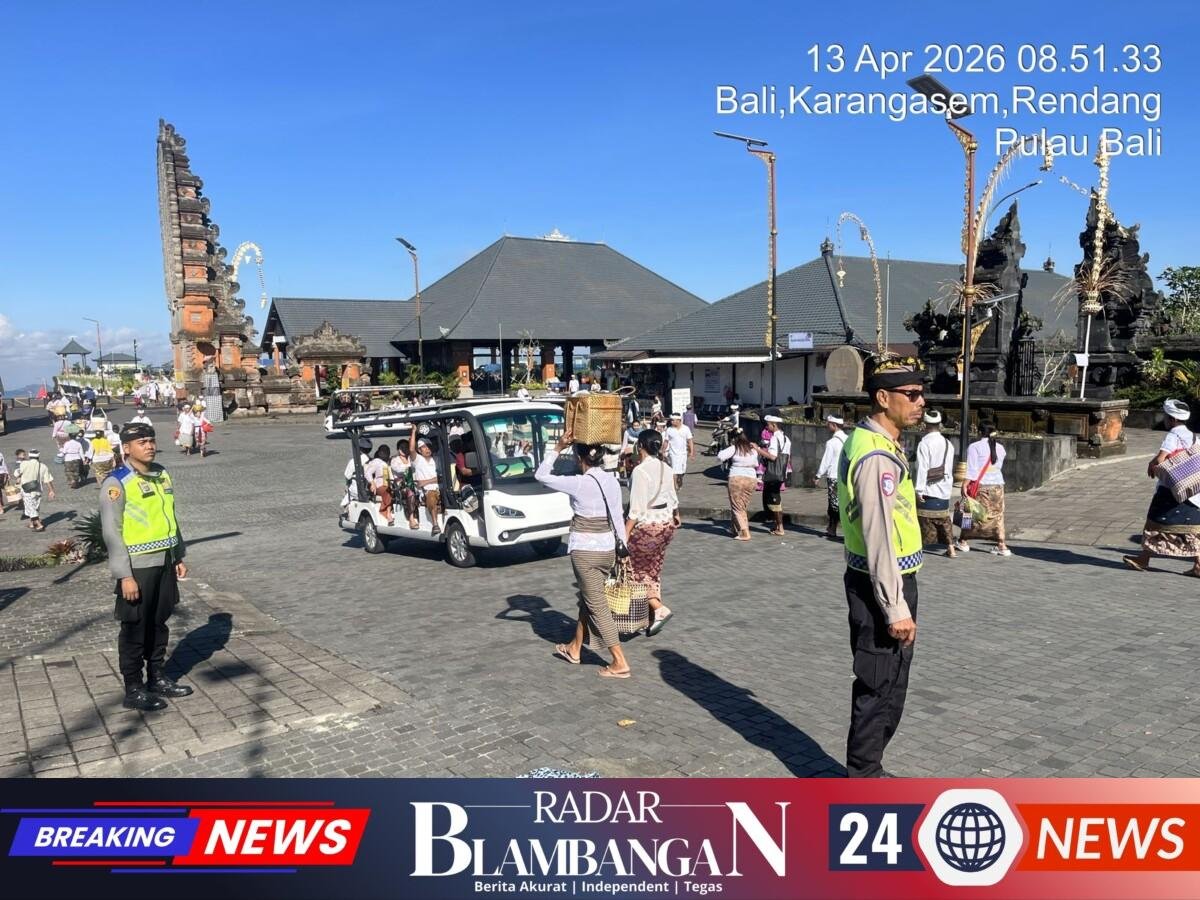 Kegiatan pengamanan karya IBTK Pura Besakih dilakukan personil Polsek Rendang Polres Karangasem dipimpin Kapolsek Kompol I Made Berata,SH,MH bersama anggota jaga tersprin tugas pengamanan IBTK Pura Besakih, senin (13/4/2026)