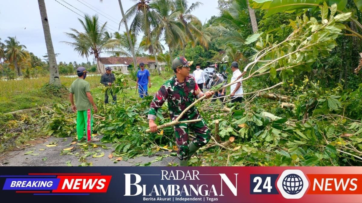 RADAR BLAMBANGAN.COM, | Songgon, Banyuwangi – Aksi cepat tanggap kembali diperlihatkan oleh prajurit TNI AD dari jajaran Koramil 0825/20 Songgon. Selasa, 24 Februari 2026, sekitar pukul 11.30 WIB, sebuah pohon besar dilaporkan tumbang dan memblokir total jalur penghubung antara Dusun Krajan dan Dusun Arjosari di Desa Bedewang, Kecamatan Songgon — akibat terjangan angin kencang yang melanda kawasan tersebut. Tanpa menunggu komando, Babinsa Desa Bedewang, Koptu Mahrus Ali, langsung bergerak menuju lokasi dan mengomando evakuasi bersama warga setempat.