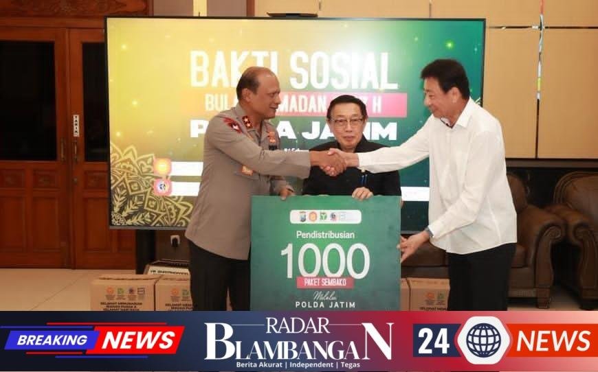 RADAR BLAMBANGAN.COM, | SURABAYA – Kepolisian Daerah Jawa Timur menerima penyerahan bantuan sosial dari Yayasan Bakti Persatuan Yayasan Bakti Persatuan berupa 1.000 paket sembako di Lobi Gedung Tribrata Mapolda Jatim, Selasa (24/2/2026).
