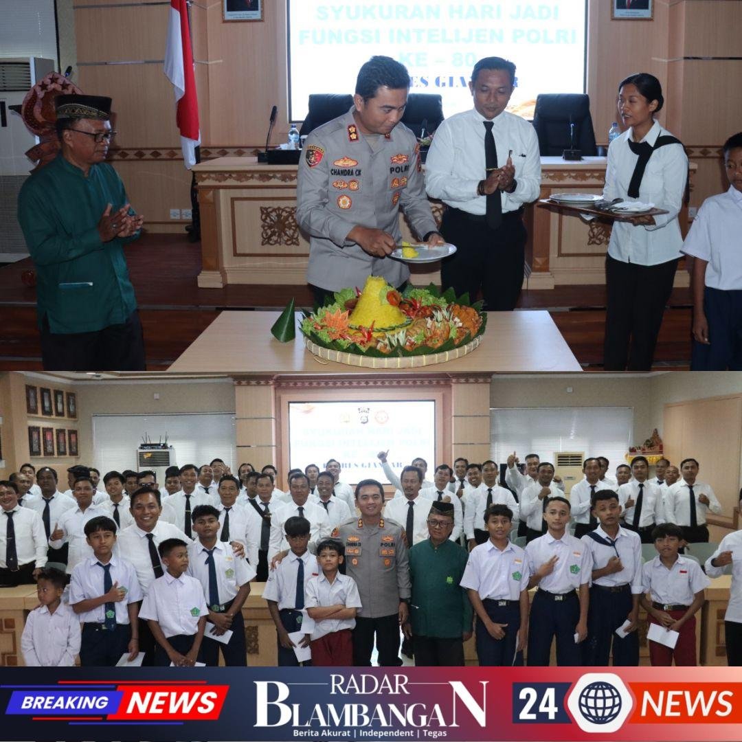 RADAR BLAMBANGAN.COM, | GIANYAR, -– Dalam rangka memperingati Hari Jadi Fungsi Intelijen Polri ke-80, Polres Gianyar menggelar kegiatan syukuran yang berlangsung di Rupatama Catur Prasetya Polres Gianyar, Senin (5/1/2026)