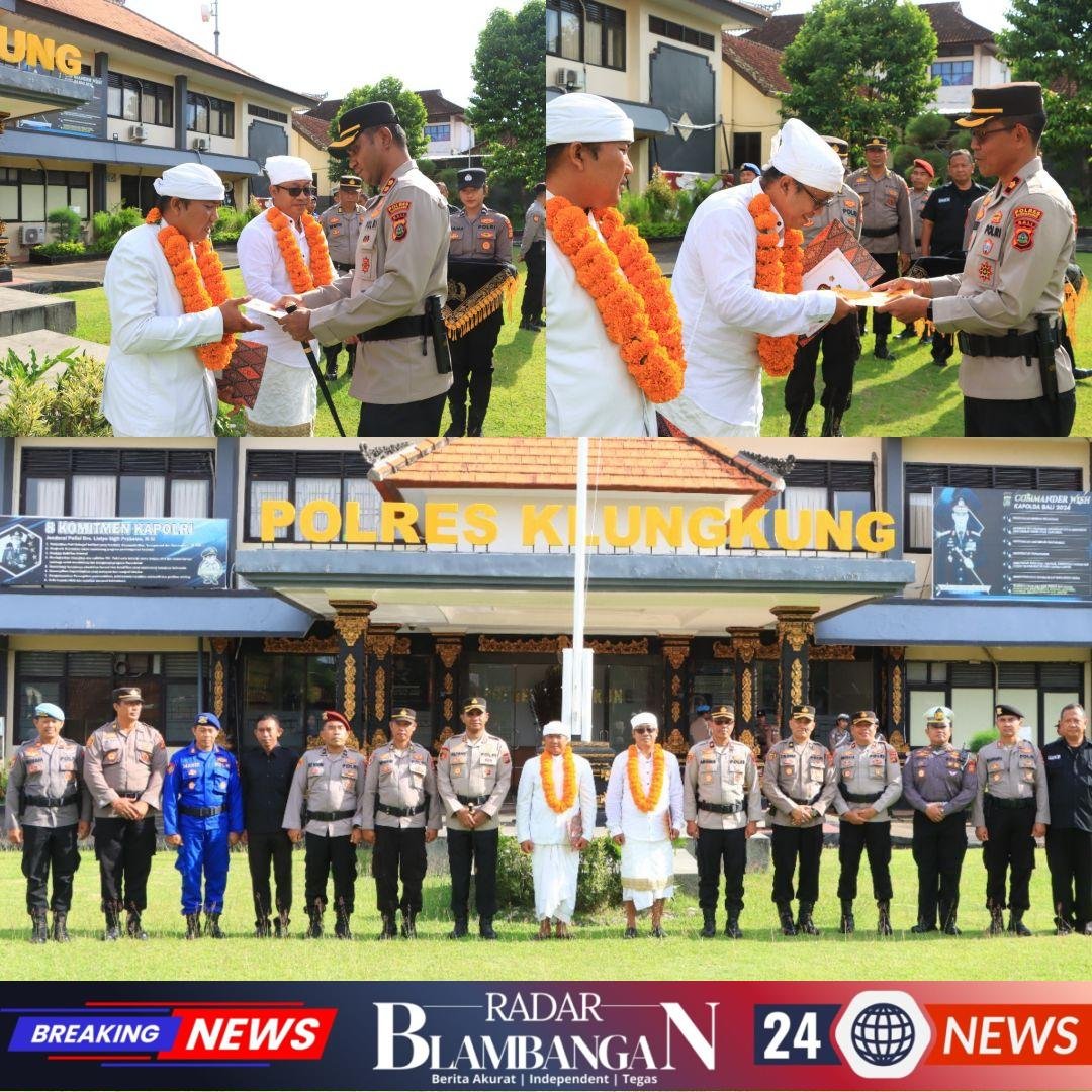 RADAR BLAMBANGAN.COM, | KLUNGKUNG, — Polres Klungkung menggelar apel pemberian Piagam Ucapan Terima Kasih kepada personel yang telah memasuki masa Purna Bakti, bertempat di Lapangan Apel Polres Klungkung, Rabu (6/11).