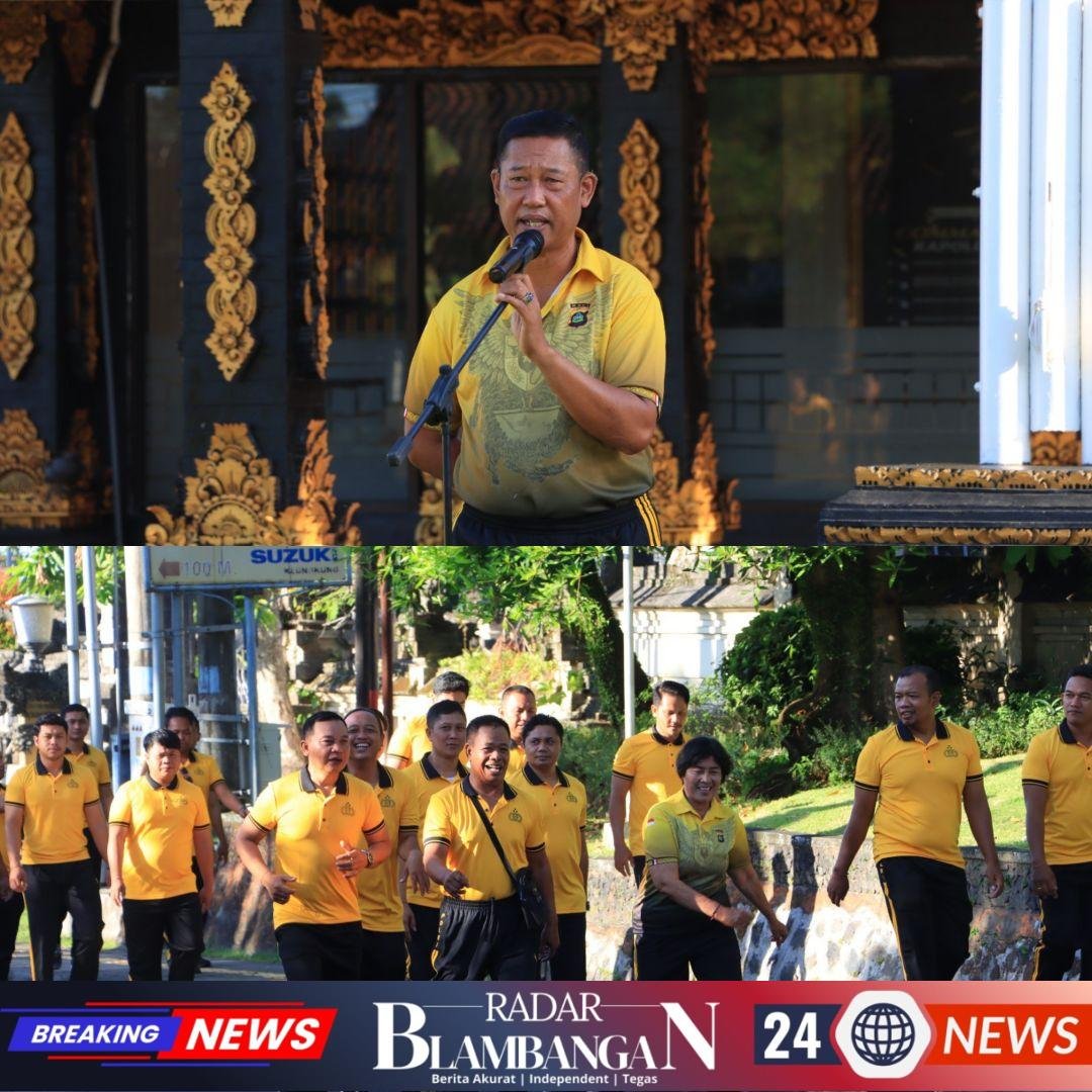 RADAR BLAMBANGAN.COM, | KLUNGKUNG, — Dalam rangka menjaga kebugaran fisik dan meningkatkan semangat kerja personel, Polres Klungkung melaksanakan kegiatan olahraga jalan santai yang mengambil rute di sekitar luar kesatrian Polres Klungkung, (7/11).