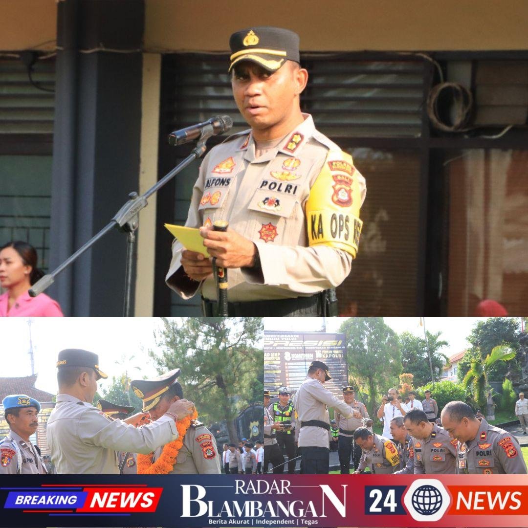 RADAR BLAMBANGAN.COM, | KLUNGKUNG, – Polres Klungkung menggelar upacara kenaikan pangkat anggota Polri dan PNS Polri, sekaligus purna bhakti personel, di Lapangan Apel Polres Klungkung. Upacara dipimpin langsung oleh Kapolres Klungkung AKBP Alfons W. P. Letsoin, S.I.K. sebagai inspektur upacara, (2/1).
