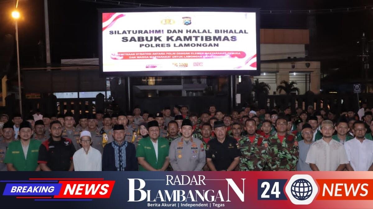 RADAR BLAMBANGAN.COM, | LAMONGAN – Dalam upaya mempererat hubungan antara Polri dan masyarakat, Polres Lamongan Polda Jatim menggelar kegiatan silaturahmi dan halal bihalal bertajuk “Sabuk Kamtibmas” yang diikuti ratusan peserta dari berbagai elemen masyarakat termasuk perguruan silat, di Halaman Mapolres Lamongan, Kamis (16/4/26).