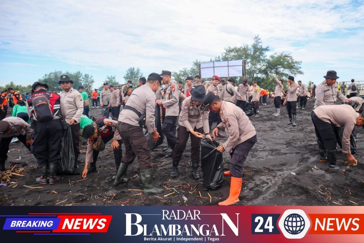 RADAR BLAMBANGAN.COM, | LUMAJANG – Menindaklanjuti arahan Presiden Republik Indonesia dalam Rapat Koordinasi Nasional (Rakornas) 2026 mengenai Gerakan Indonesia Asri (Aman, Sehat, Resik, Indah ), Ratusan personel Polres Lumajang Polda Jatim menggelar aksi kerja bakti atau korve massal di kawasan wisata Pantai Watu Pecak, Kecamatan Pasirian, pada Jumat (6/2/2026) pekan lalu.
