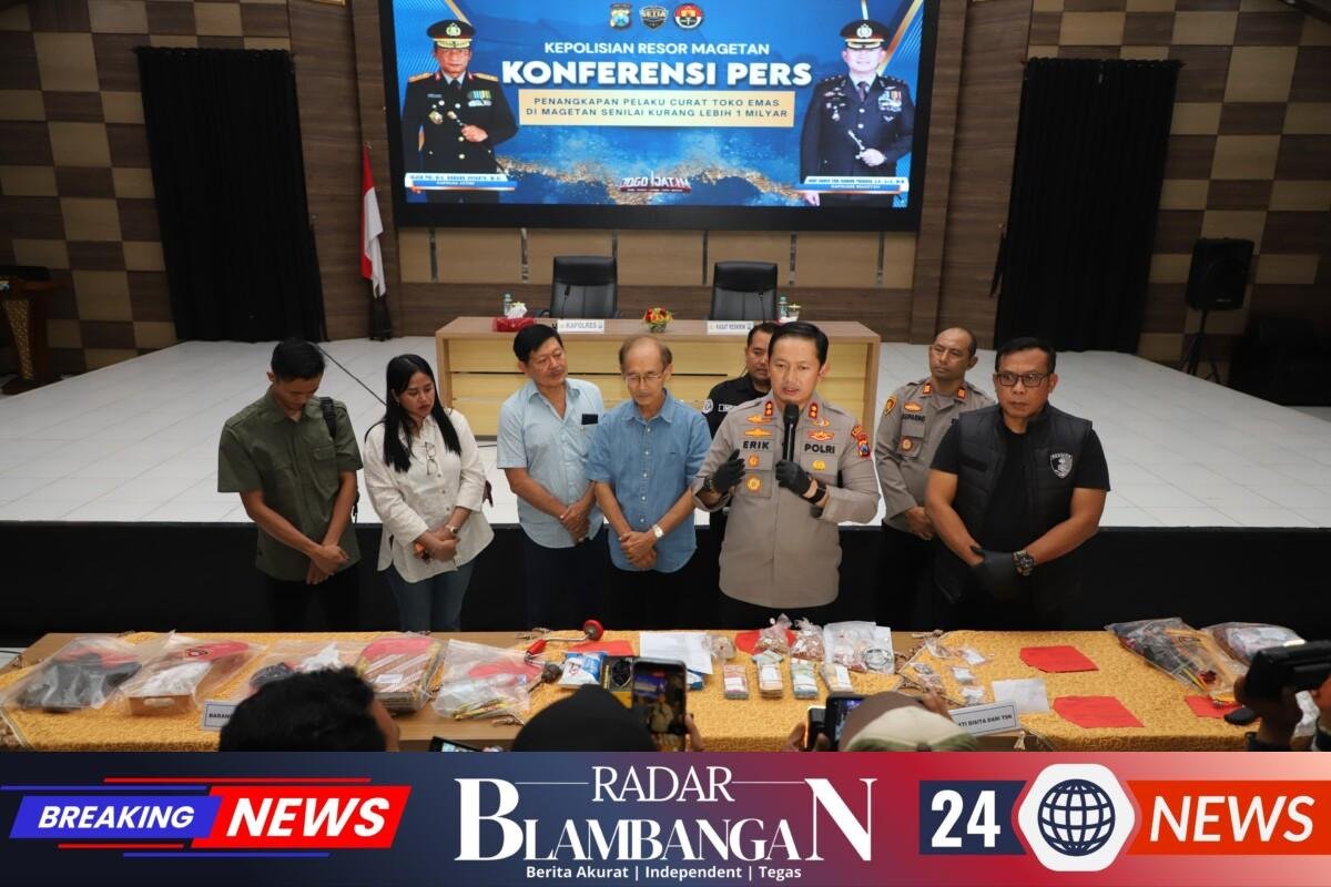 RADAR BLAMBANGAN.COM, | MAGETAN – Kurang dari 24 jam, jajaran kepolisian Resor Magetan Polda Jatim berhasil mengungkap dan mengamankan terduga pelaku pembobolan toko emas yang terjadi di wilayah Kecamatan Bendo, Kabupaten Magetan.