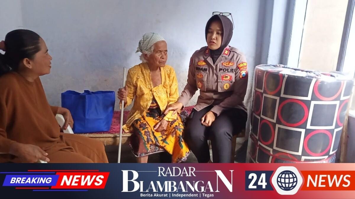 Pada Jumat siang (20/2/26), personel Sat Binmas Polres Lumajang Polda Jatim mendatangi kediaman Nenek Murtimah untuk menyerahkan bantuan sosial berupa satu unit kasur baru dan paket sembako.