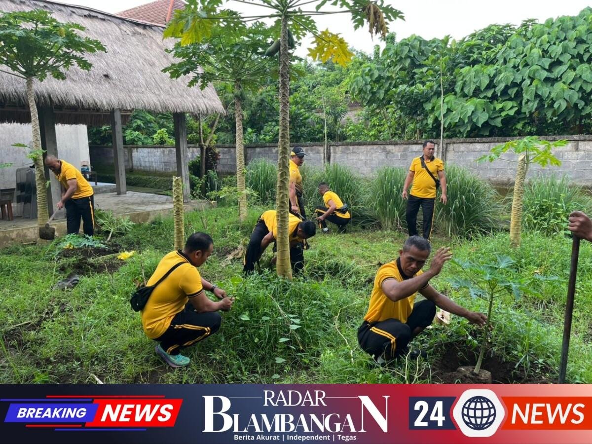 RADAR BLAMBANGAN.COM, | KLUNGKUNG, – Personel Polsek Banjarangkan melaksanakan kegiatan perawatan tanaman di Kebun P3L (Pekarangan Pangan Lestari) Polsek Banjarangkan. Kegiatan tersebut meliputi penggemburan tanah, pembersihan gulma, serta pemupukan tanaman guna menjaga kesuburan dan pertumbuhan tanaman secara optimal.