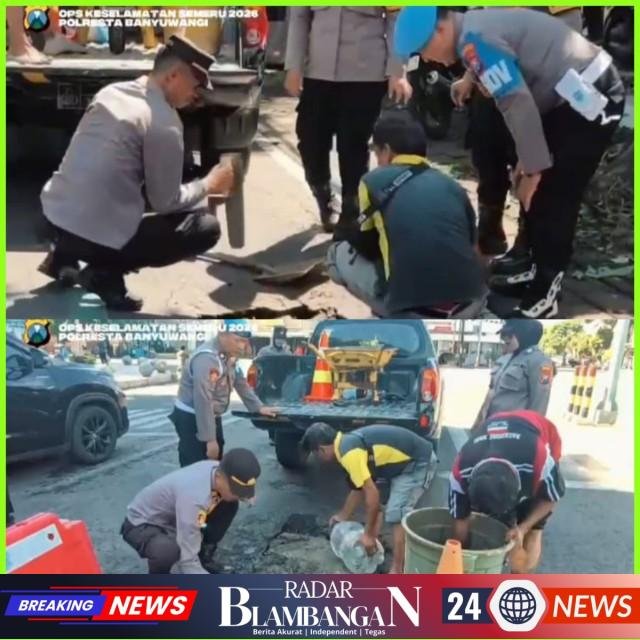 RADAR BLAMBANGAN.COM, | Banyuwangi – Polsek Banyuwangi melaksanakan kegiatan sosialisasi sekaligus penambalan jalan berlubang pada Selasa, 3 Februari 2026, sebagai bentuk kepedulian Polri terhadap keselamatan pengguna jalan serta upaya menekan angka kecelakaan lalu lintas di wilayah hukum Kecamatan Banyuwangi.