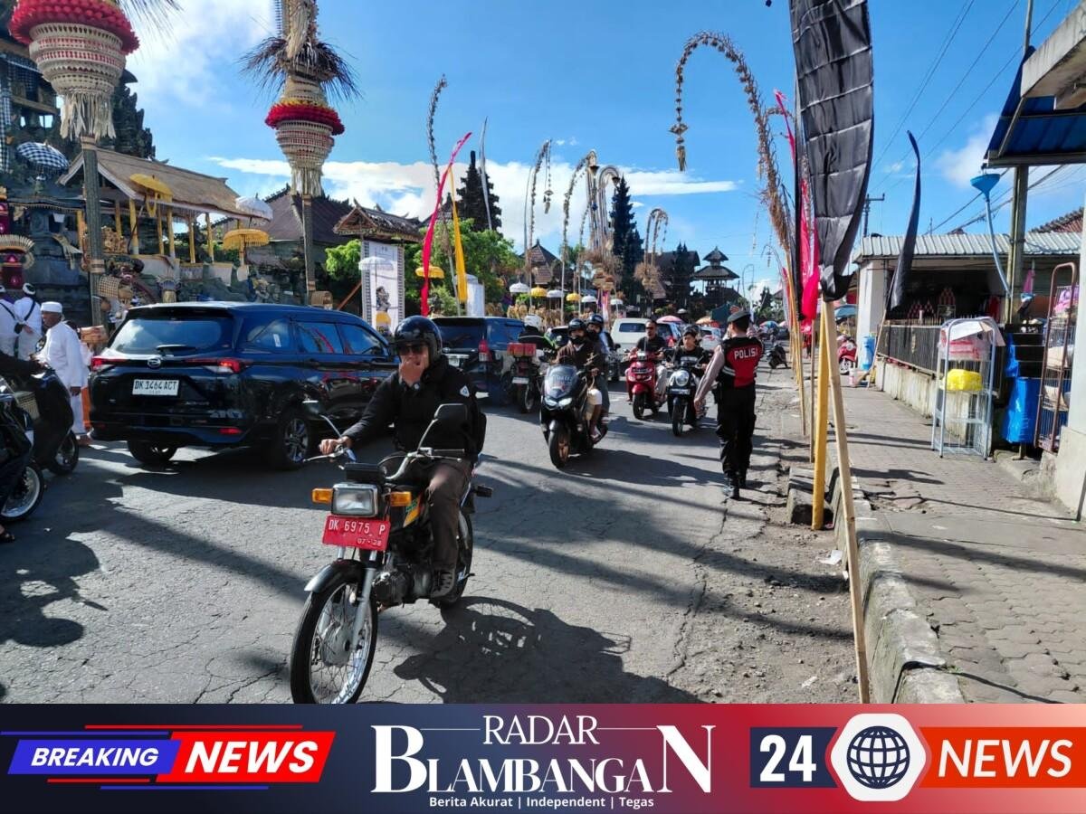 RADAR BLAMBANGAN.COM, | Bangli — Polsek Kintamani kembali menunjukkan kesiapsiagaannya dalam memberikan pelayanan terbaik kepada masyarakat dengan melaksanakan pengamanan dan pengaturan arus lalu lintas di depan Pura Batur, Senin (20/4/2026).
