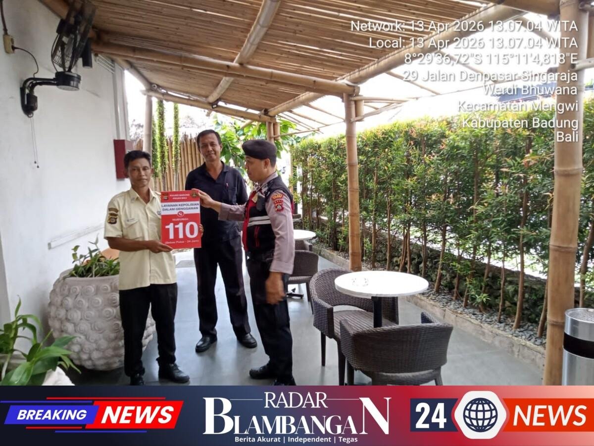 RADAR BLAMBANGAN.COM, | Mengwi – Dalam rangka meningkatkan pelayanan kepada masyarakat serta menjaga situasi kamtibmas tetap kondusif, Polsek Mengwi terus menggencarkan sosialisasi layanan pengaduan kepolisian melalui call center 110 di tempat-tempat keramaian. Senin (13/4/2026)