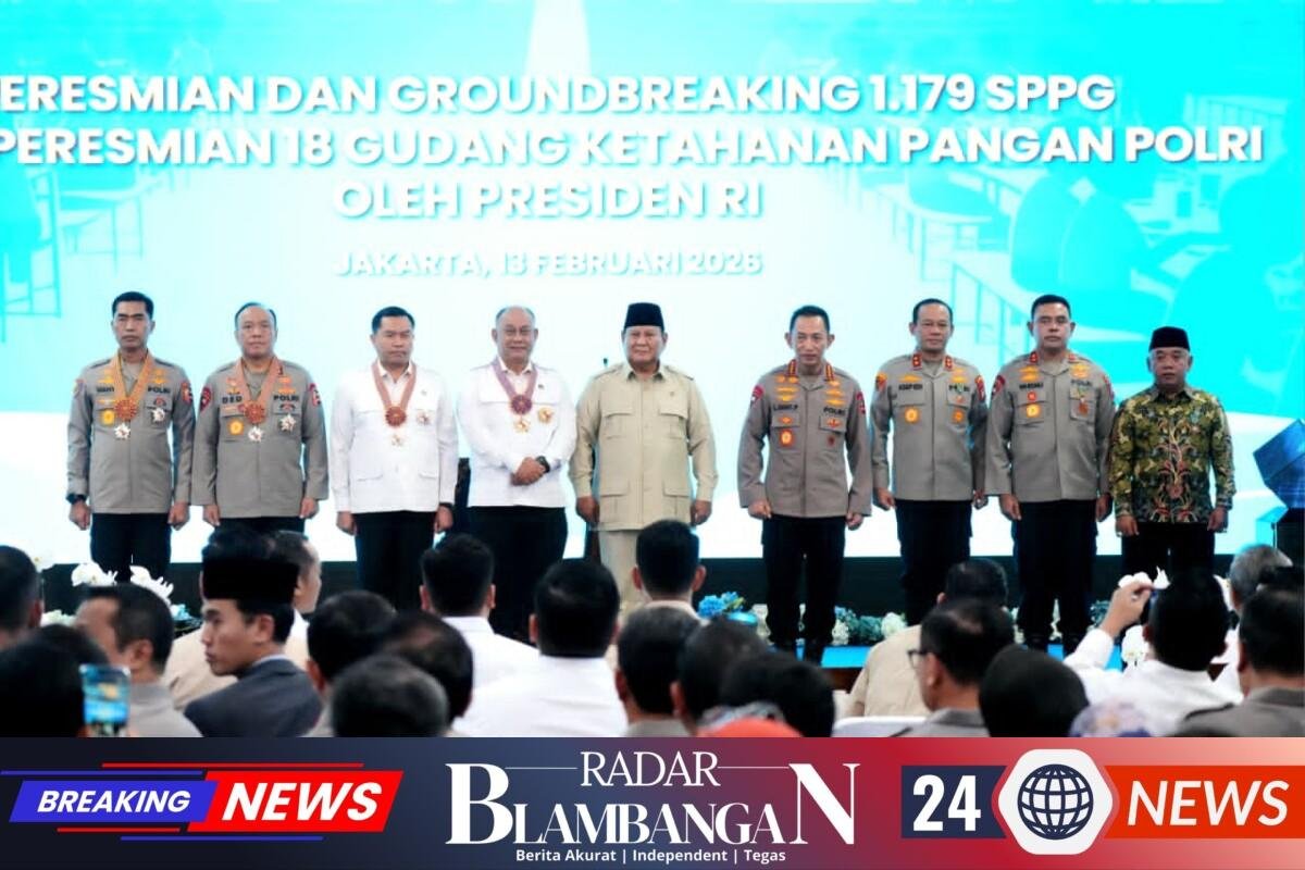 RADAR BLAMBANGAN.COM, | JAKARTA – Presiden Republik Indonesia, Prabowo Subianto, menganugerahkan tanda kehormatan Bintang Jasa dan Satyalancana Wira Karya kepada para pejabat Polri serta tokoh masyarakat yang menjadi penggerak Program Makan Bergizi Gratis (MBG) dan penguat rantai pasok Satuan Pelayanan Pemenuhan Gizi (SPPG) Polri dalam mendukung ketahanan pangan nasional.